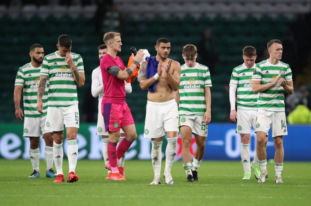 Giorgos Giakoumakis of Celtic iat full time during the Europa League group G match between Celtic and Bayer Leverkusen (Photo by Ian MacNicol/Getty Images)