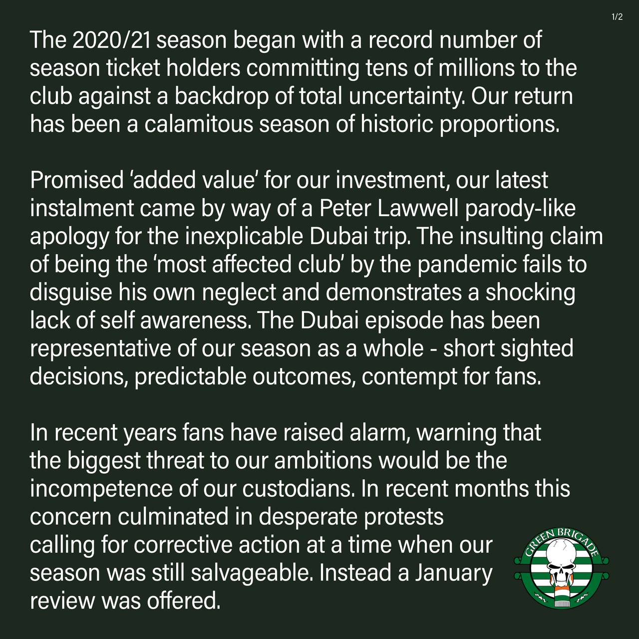 Green Brigade banner and statement pic.twitter.com/RLm0N5epmP