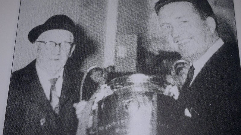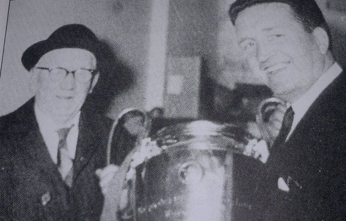 Jimmy and Jock with the Scottish Cup in Glasgow’s Central Hotel in April 1965