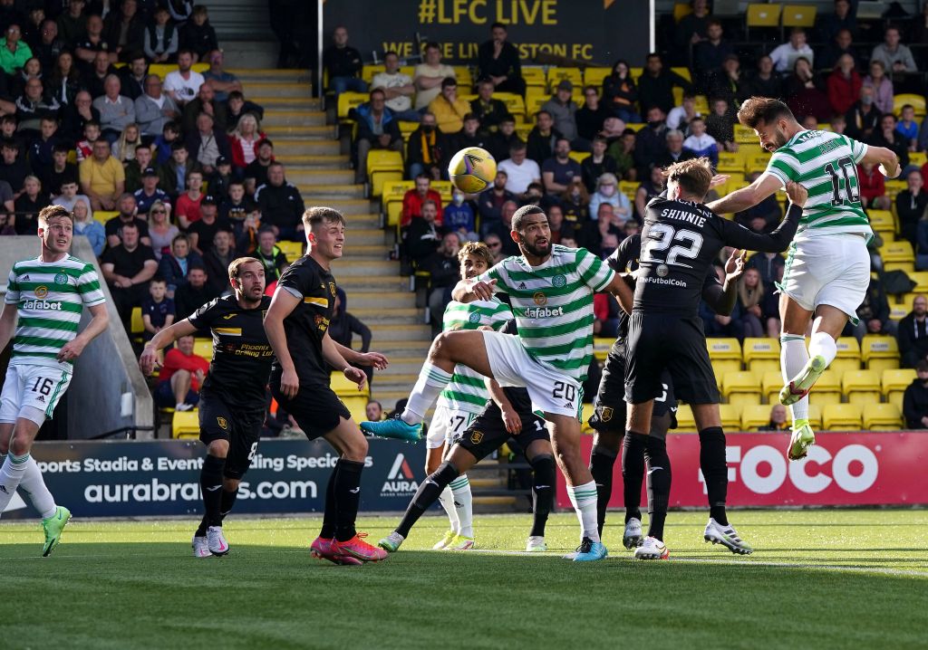 Livingston v Celtic –  Albian Ajeti heads towards goal. Photo Andrew Milligan