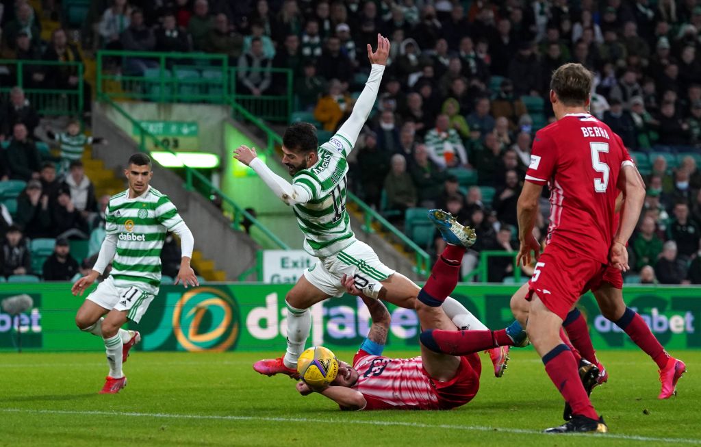 Celtic v Raith Rovers – Albian Ajeti is challenged by Raith Rovers Kyle Benedictus. Photo Andrew Milligan