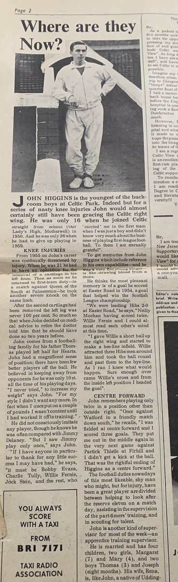 His time at Celtic after his playing days was mentioned by Jim Craig, writing on The Celtic Star in 2018, describing John Higgins as one of his mentors at Celtic alongside Alec Boden.