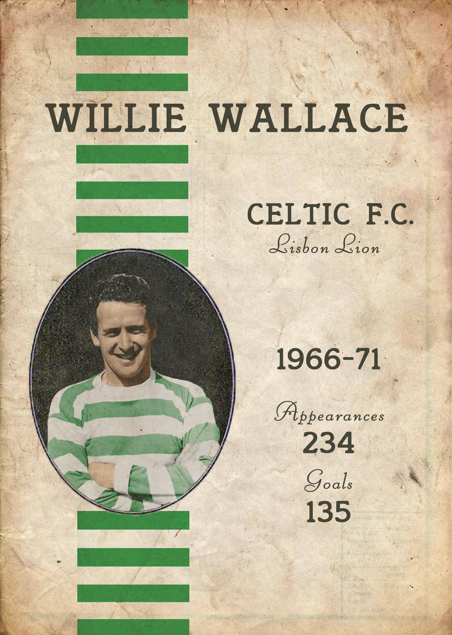 Willie Wallace wore the Number 8 jersey for Celtic after his move from Hearts in December 1966 and it took him 79 appearances for Jock Stein’s side to score 50 goals Celtic, two of them incidentally were featured on The Celtic Star last night as we looked back on Celtic’s 3-1 European Cup semi-final, first leg win over Dukla Prague on 12 April 1967.