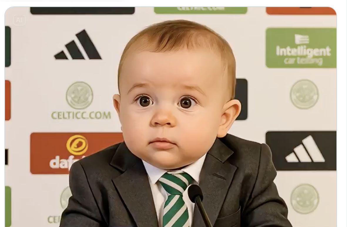 It’s an AI created video of Brendan Rodgers – as a baby – telling it like it is as far as the number of times as Celtic manager he’s heard that theRangers are coming and the number of managers of the latest Ibrox club that he’s seen off in his two stints in the Parkhead hot-seat…