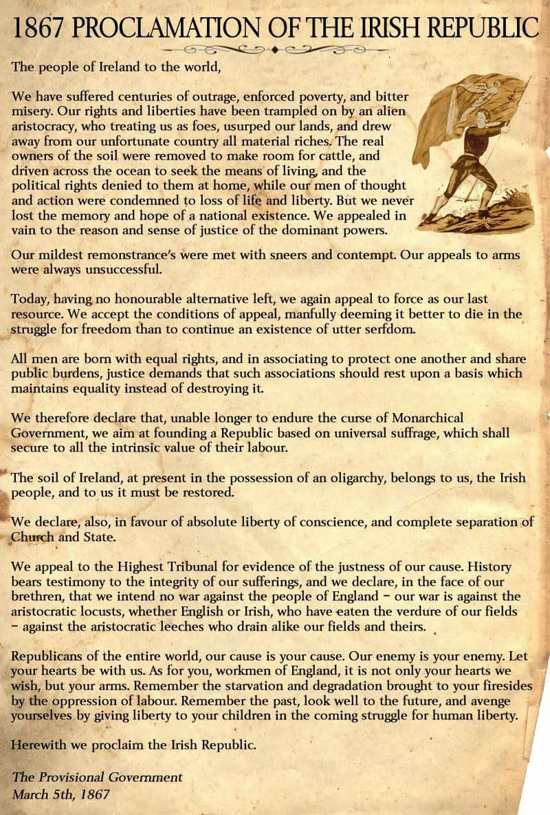 On Tuesday 5 March 1867, the Fenian Movement published a Proclamation Of The Irish Republic. Incredibly, the Fenian Uprising of that year would involve one of Celtic’s founding fathers (Pat Welsh) and would lead to Celtic’s first manager (Willie Maley) joining the club 20 years later!