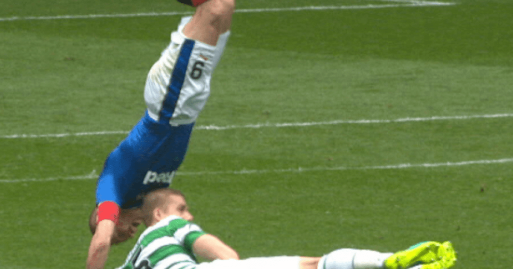 We were talking earlier about Jozo’s popularity among the support. A factor in this is undoubtedly THAT tackle in the 5-1 game last season that sent Kenny Miller into orbit. If you recall, Celtic broke up the park and Scotty Sinclair had two relatively easy chances to score. In Brendan’s book, The Road to Paradise, he mentions how disappointed Sinclair was that day because he feels he should have had a hat-trick, rather then the penalty he converted after Paddy Roberts was up-ended.