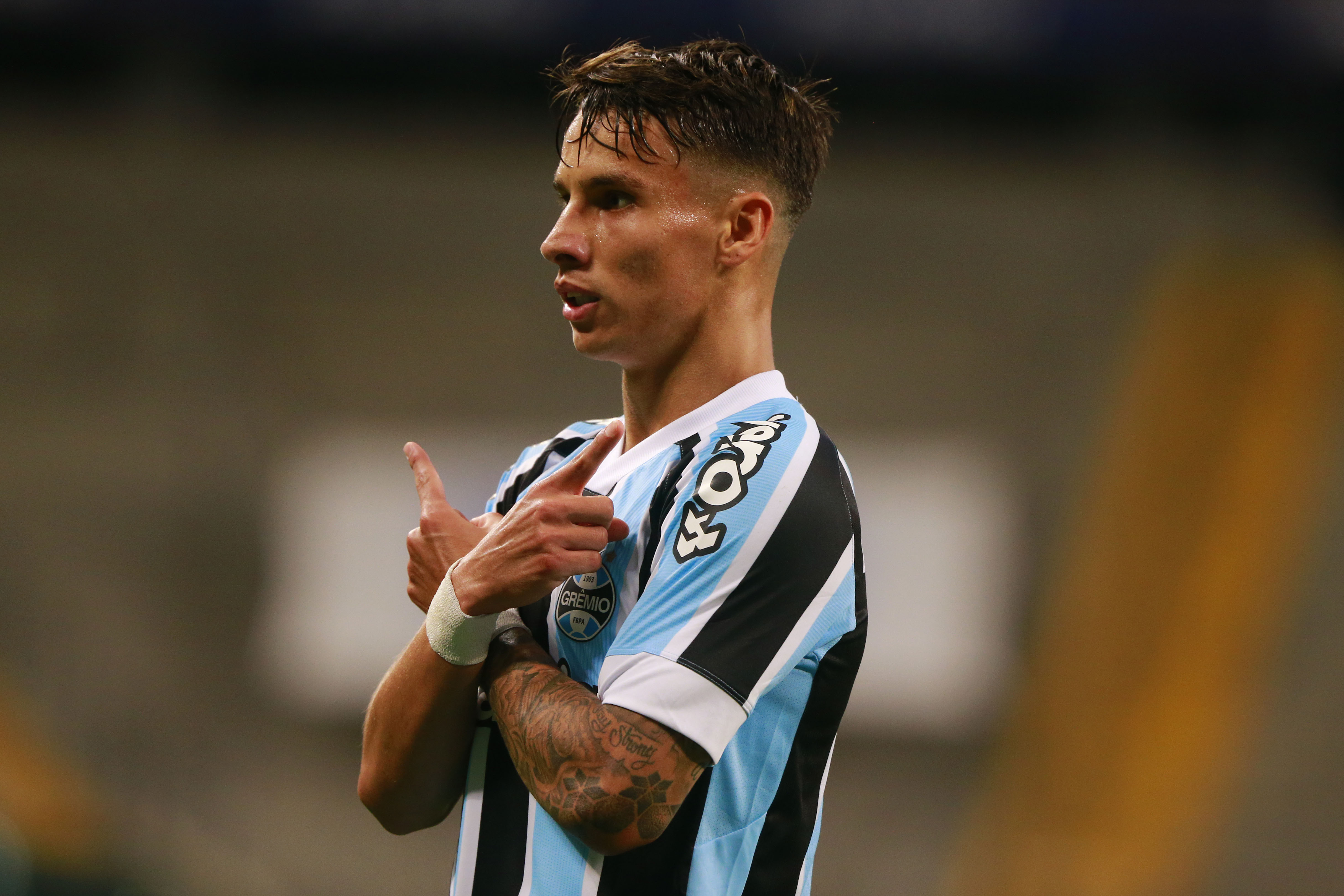 PORTO ALEGRE, BRAZIL – NOVEMBER 23: Ferreira of Gremio celebrates after scoring the second goal of his team during the match between Gremio and Flamengo as part of Brasileirao Series A at Arena do Gremio on November 23, 2021 in Porto Alegre, Brazil. (Photo by Silvio Avila/Getty Images)