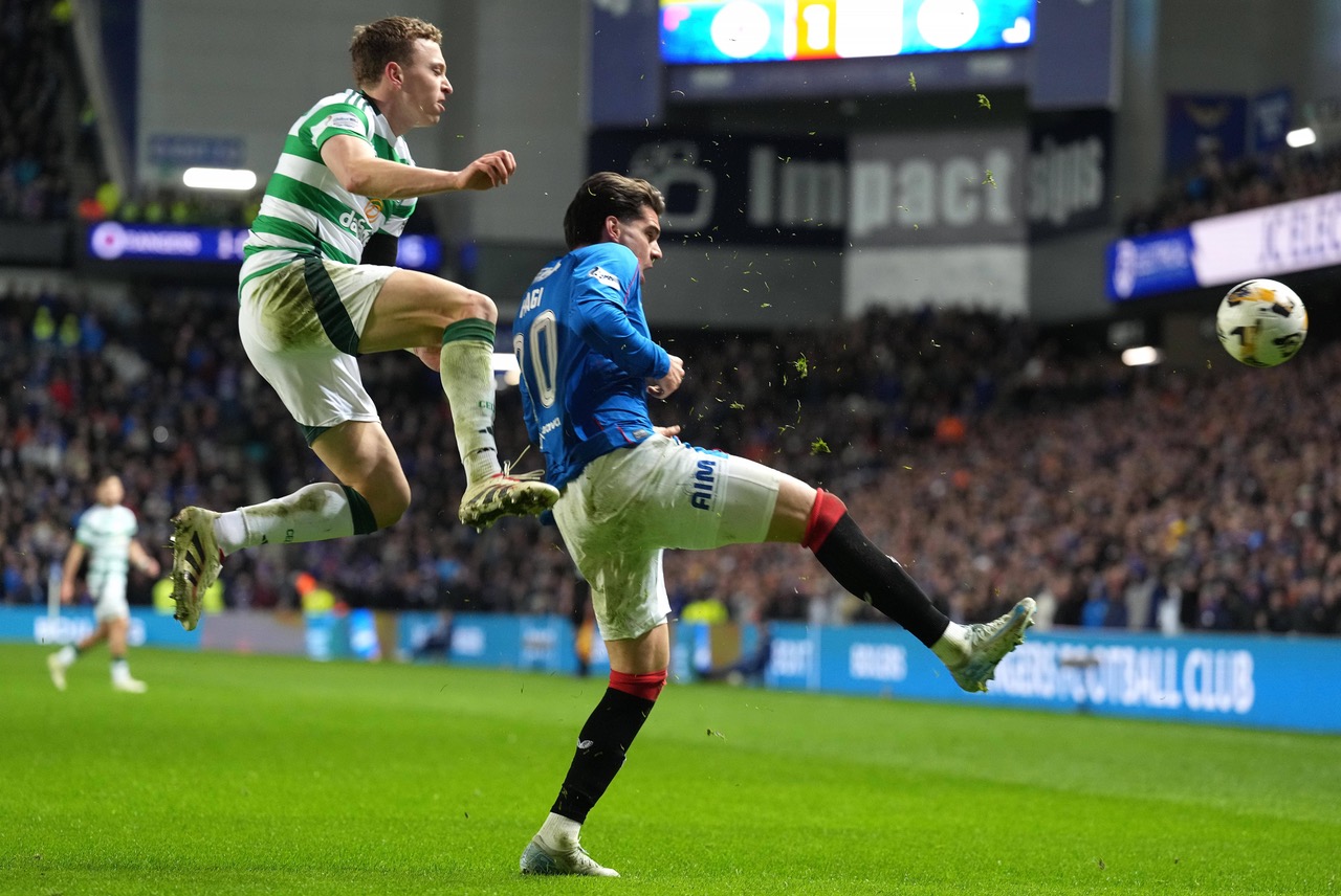 Scottish Premiership – theRangers vs Celtic – Ibrox – Thursday 2nd January 2025. Nedim Bajrami of Rangers vies with Alistair Johnston of Celtic. Photo IMAGO.