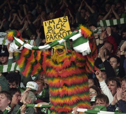 The ‘parrot’ then became the club’s new mascot. Stupidly, much loathed director Michael Kelly was in disguise in the Jungle in a tiger suit. If found out, there could have been some serious trouble.