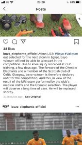 Ivory Coast’s U23s have confirmed that Celtic’s number 10, Bayo, has been ruled out of their upcoming AFCON clash with Egypt. Test results were expected on Monday to confirm the extent of the injury; however, they have confirmed in a post one their official Instagram that Bayo would be withdrawing due to an injury sustained training with Celtic.