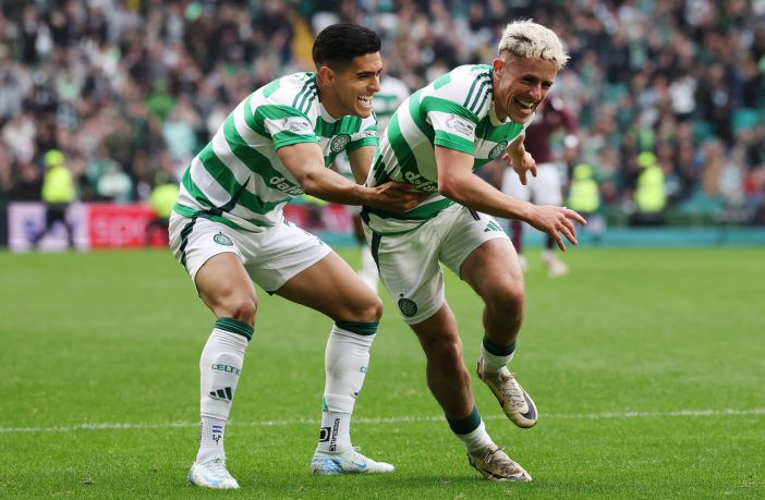 ON CELTIC SHORTS…Celtic new Bhoys Engels and McCowan get the goals to send Hearts bottom