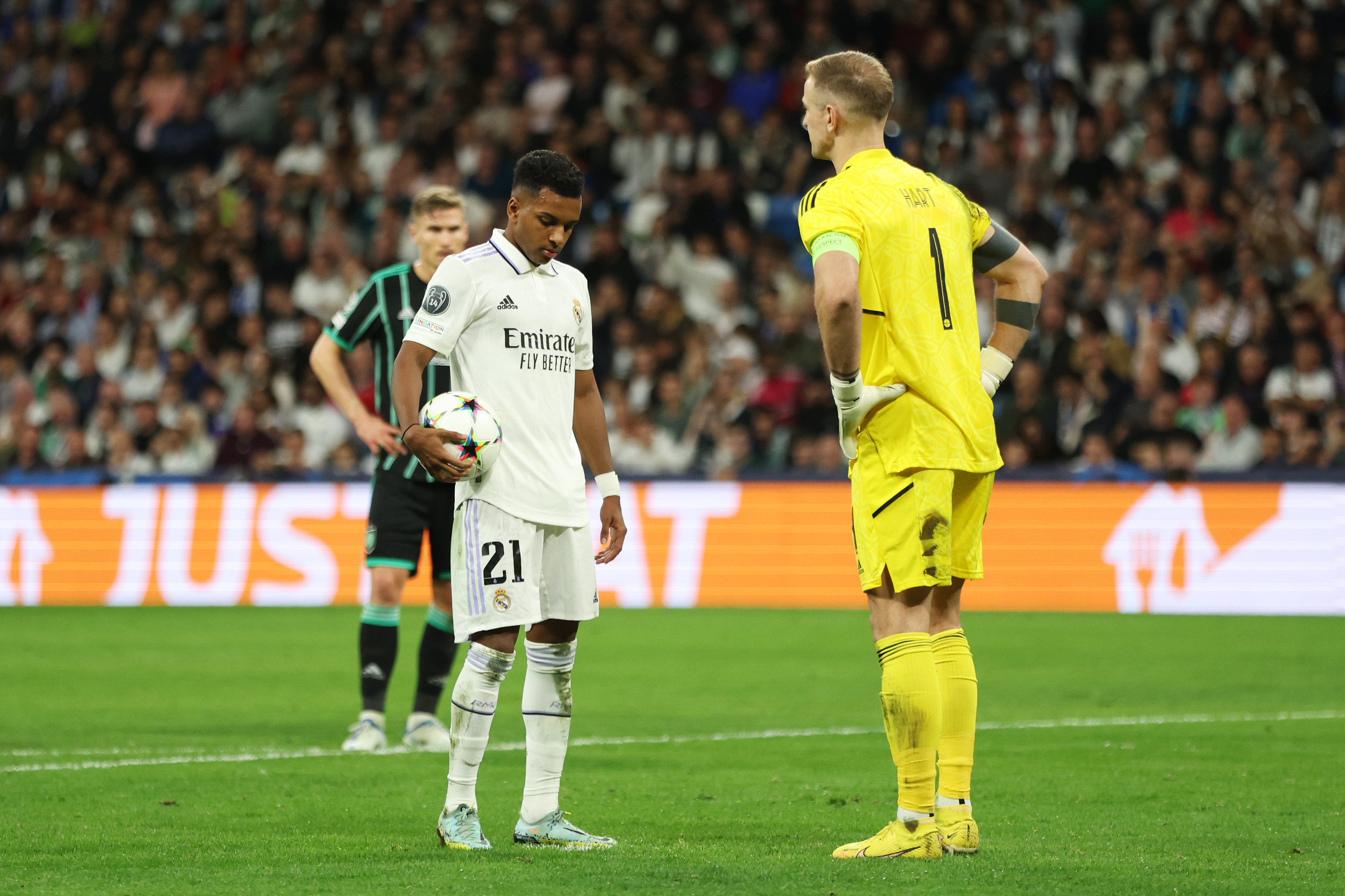 Rodrygo of Real Madrid prepares to take their sides second penalty during the UEFA Champions League group F match between Real Madrid and Celtic FC at Estadio Santiago Bernabeu on November 02, 2022 in Madrid, Spain. (Photo by Clive Brunskill/Getty Images)