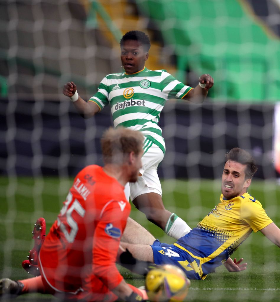 Celtic v St Johnstone – Scottish Premiership – Celtic Park Celtics Karamoko Dembele scores our fourth goal of the game during the Scottish Premiership match at Celtic Park, Wednesday May 12, 2021. Photo Andrew Milligan