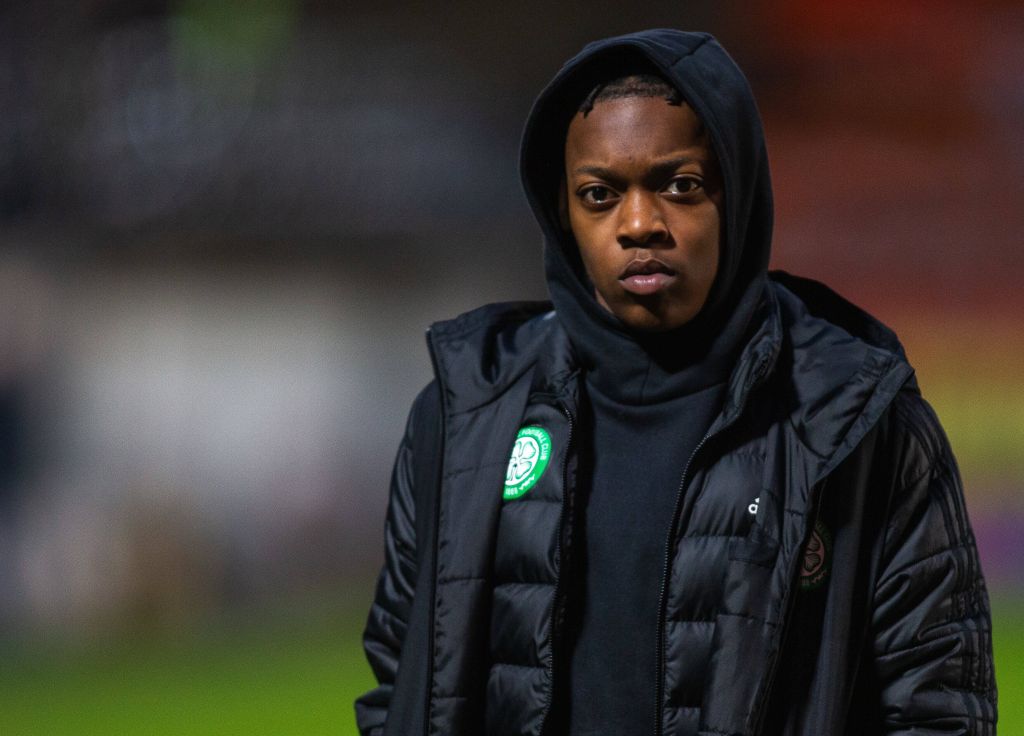 Photo by Rogan/JMP/Shutterstock – Karamoko Dembele as Celtic arrive at the Robins High Performance centre ahead of the game Bristol City v Celtic, Photo Rogan/JMP/Shutterstock