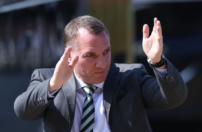 Brendan Rodgers waves to fans as he steps off the coach prior to the Scottish Premiership match between Celtic and theRangers at Celtic Park on May 11, 2024. (Photo by Ian MacNicol/Getty Images)