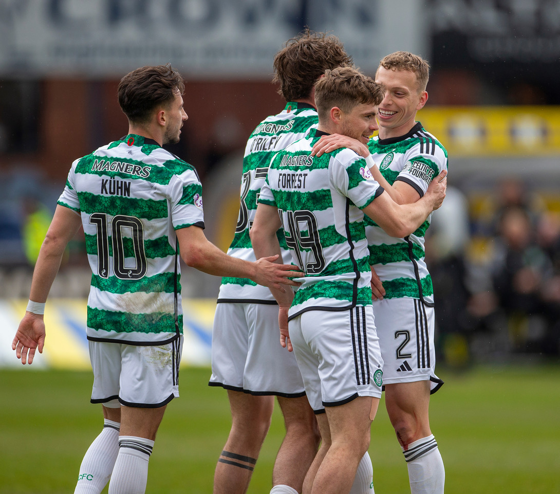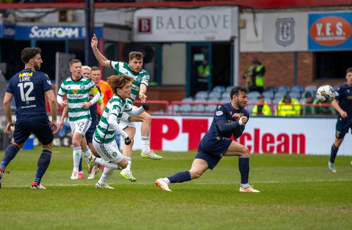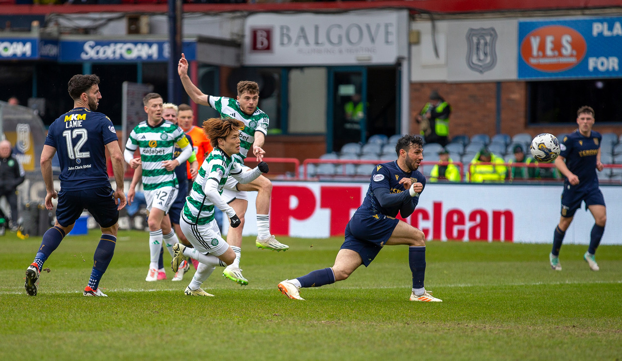 James Forrest won the three vital points for site chasing Celtic at Dens Park yesterday afternoon with his brilliant double that maintains Celtic’s three points lead at the top of the Scottish Premiership with just four matches now remaining.