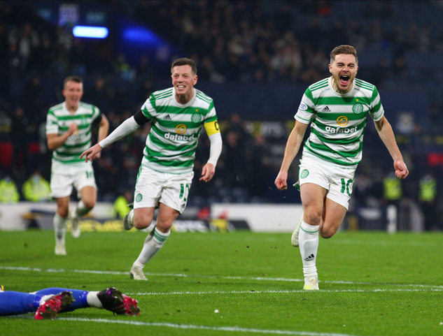 Callum McGregor and James Forrest celebrating at Hampden last weekend. Photo Vagelis Georgariou