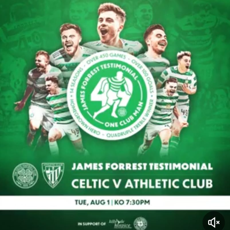 James Forrest will be honoured for his terrific service to Celtic with a testimonial against Athletic Club, Bilbao on Tuesday 1st August at Celtic Park…and throughly deserved it is too.