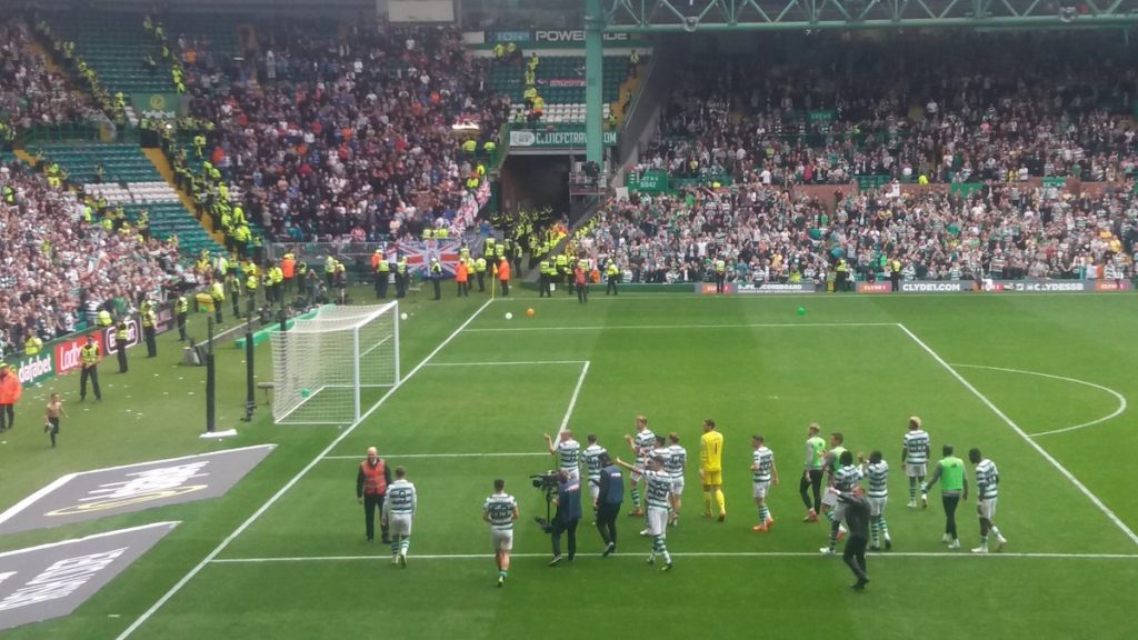 This was the first match at Celtic Park where the number of away fans had been reduced from around 8000 to just 800 and obviously that meant that there were approximately 7000 extra Celtic supporters at this game, that would have previously been the case.
