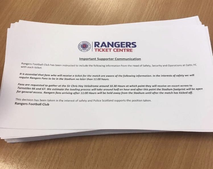 Rangers Football Club has been instructed to include the following information from the Head of Safety, Security and Operations at Celtic FC with each ticket.
