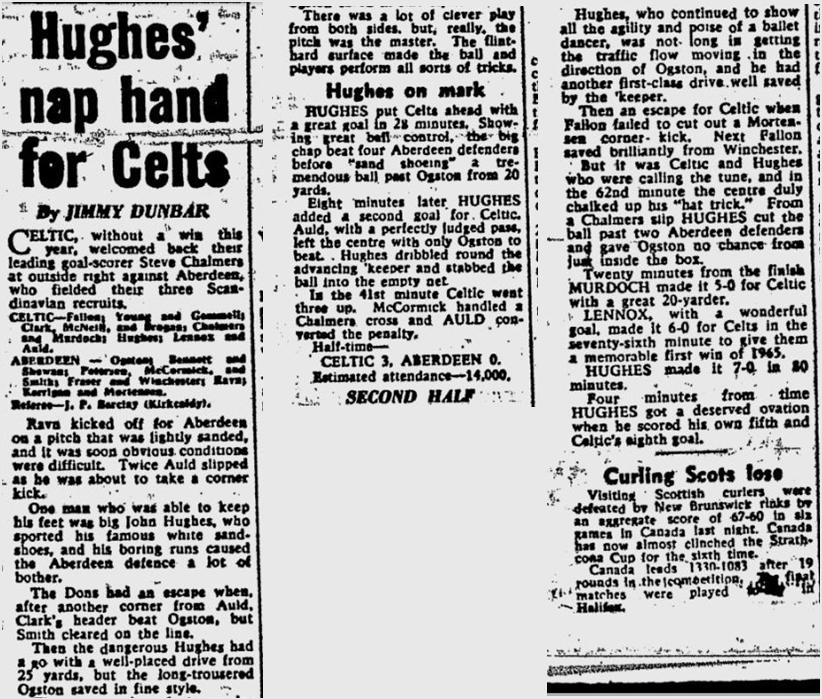 Probably the most famous of Yogi’s ‘weather related” performances was his “sand shoe shuffle” on a hard frozen pitch at home to Aberdeen on 30 January 1965. He scored 5 in the 8-0 win and the following day it was announced that Jock Stein would be coming to Celtic as manager. A few months later the Scottish Cup was won and we knew there would be more to follow.