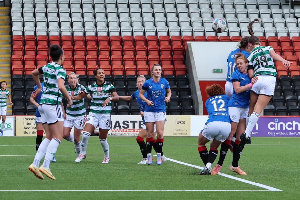 Realising Celtic were there for the taking, Jo Potter’stheRangers side started the second half on the front foot but in a rare surge forward Caitlin Hayes won a corner when she found herself out on the right wing and she then out jumped theRangers defence – who quite understandably had been worried about the Irish international defender’s aerial all afternoon – to head Celtic in front.
