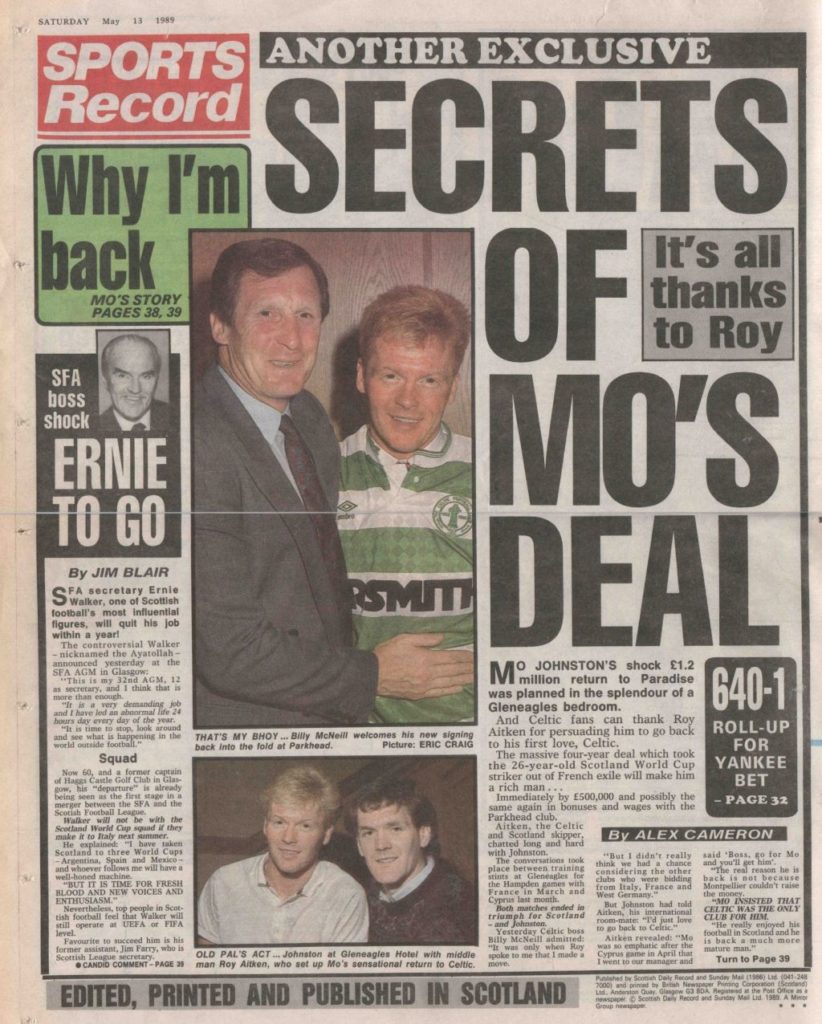 Johnston left Celtic for France in 1987 signing for Nantes but Glasgow was never far way from his thoughts. His time in France seemed to make him a more complete footballer for those Scotland fans who had previous watched him in play domestically in Scottish football. Rumours in the media that a return home to his boyhood favourites Celtic seemed likely and gave Celtic fans a great deal of hope in increasing tough times.