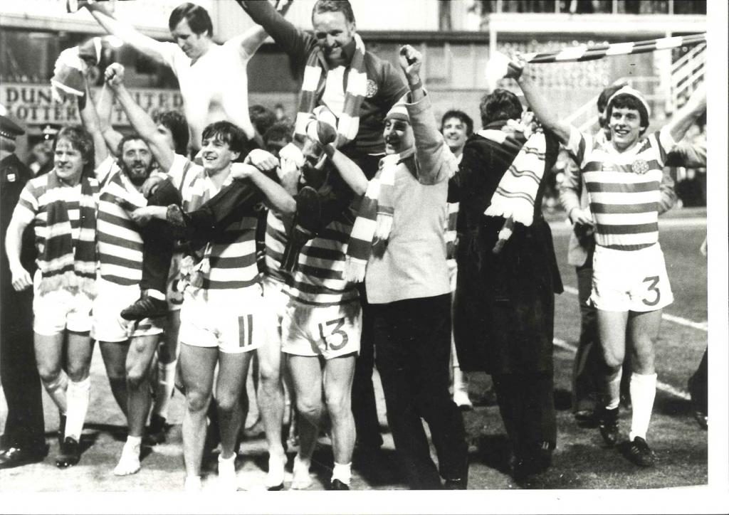 Anyway doomed Hearts were thrashed at Parkhead by a rampant Celtic team with the Championship clealry in their sights. George McCluskey scored twice (one was a penalty) as did Murdo MacLeod while McGarvey and Provan scored the others in front of a paltry 13,300 crowd – contrast with size of the crowd to see Celtic play Ross County yesterday. Celtic would be champions 3 weeks later, after a dramatic 3-2 win at Dundee United. What a night that was!