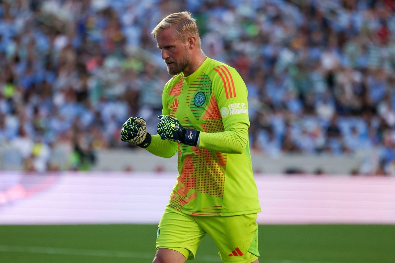 IMAGO / ZUMA Press Wire. July 23, 2024: Kasper Schmeichel celebrates a goal during the FC Series match between Manchester City and Celtic at Kenan Memorial Stadium in Chapel Hill, North Carolina. Photo Greg Atkins