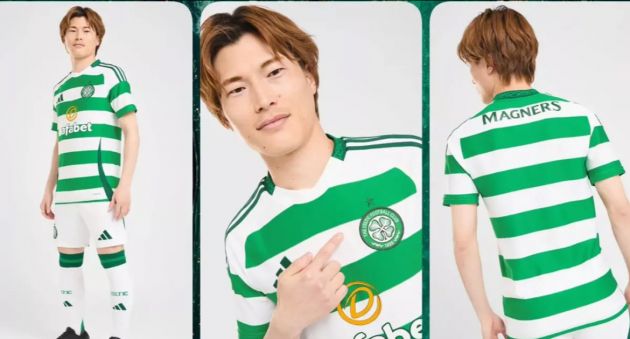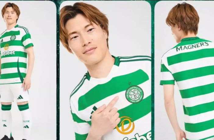 Celtic’s home shirt for next season has seemingly been leaked online with images of Kyogo posing in the new Adidas shirt circulating online. The Japanese striker is the face of the new effort by the German kit manufacturer, who have reverted to a more classic look after this season’s unique take on the Hoops.