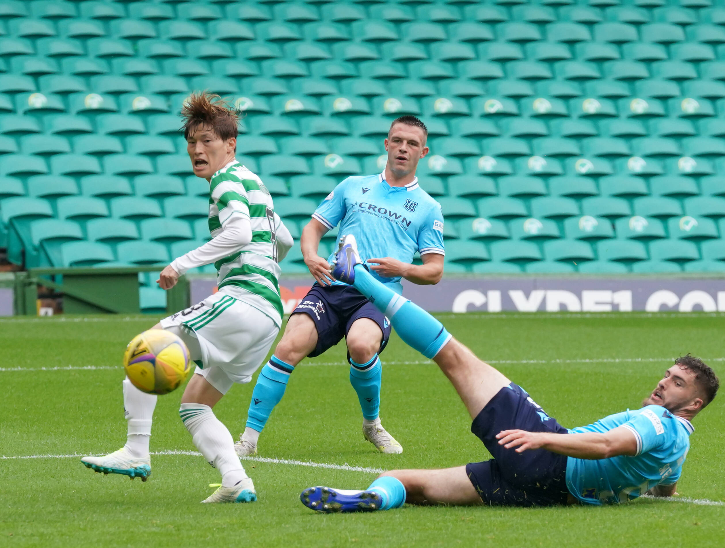 And that was all Ange wroteKyogo Furuhashi scores at Celtic Park. Photo: Jane Barlow
