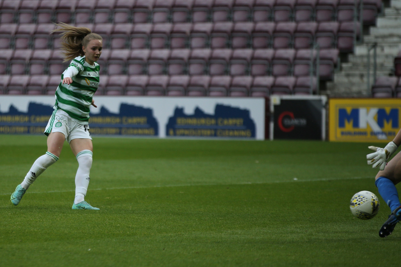 Izzy Atkinson eventually rewarded the manager for his tactical bravery and her teammates for their herculean efforts on the day, when from a sublime Sarah Harkes through ball, Atkinsons first touch was measured to perfection and the second touch was a low left footed finish that went through the legs of Celtic’ goalkeeping nemesis of the second half, Lee alexander in the City goal, and Celtic FC Women had won their first Scottish Cup and with it completed an incredible cup double having won the League Cup against the same team back in December.