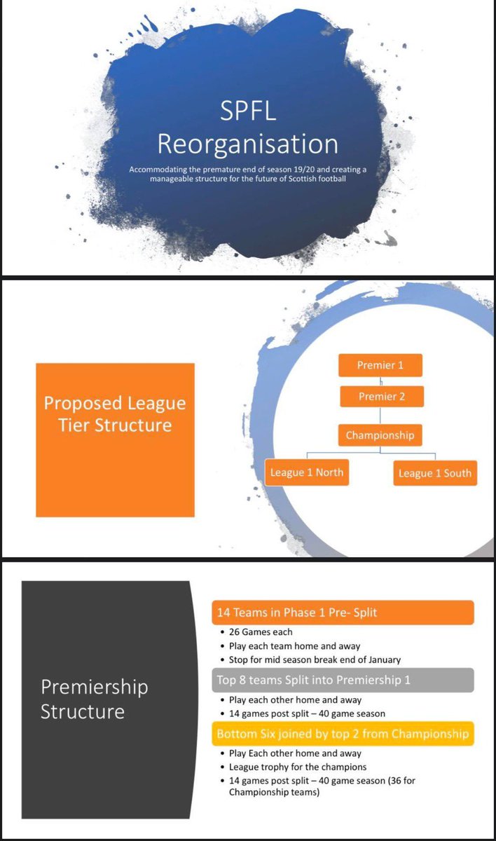 “Supposed SPFL ‘leaked’ document outlining reorginisation plans for next season. Shoehorns the 4 Old Firm (sic) fixtures, stops this seasons bottom placed teams being relegated and promotes the top sides from each division, including Highland and Lowland. Thoughts?” Ruaridh Kilgour tweeted.