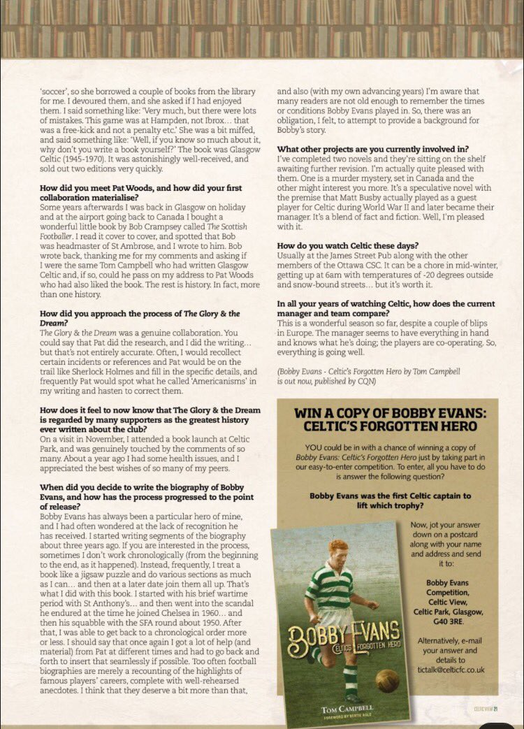 Rest in peace Tom and thanks for writing for The Celtic Star, no doubt urged on to do so by your great pal David Potter.