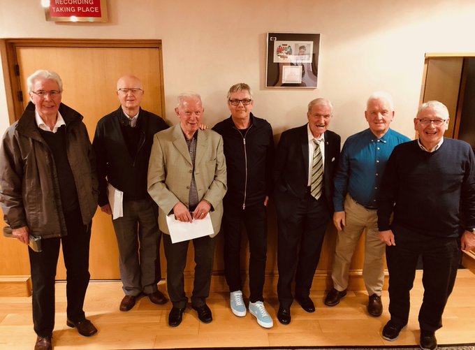 Archie Macpherson in conversation last night with John Clark, Bobby Lennox, Bertie Auld, Jim Craig and having just arrived in Scotland from his home Australia, Willie Wallace.