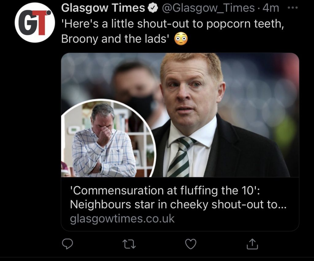 These papers – they share the content – one week later get access to the Celtic manager – and no-one at Celtic seems to care. Apparently the club wrote to the Glasgow Times editor to complain about the ‘popcorn teeth’ remark, shown below but there’s been no word of any response not any subsequent action.