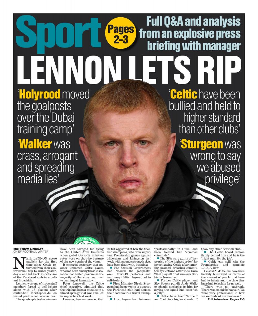 In The Herald today – the sister paper of the Glasgow Times who last week called Lennon ‘Popcorn Teeth’ and who published this photograph of the Celtic manager, no-doubt carefully selected, when reporting on his post Dubai meltdown:
