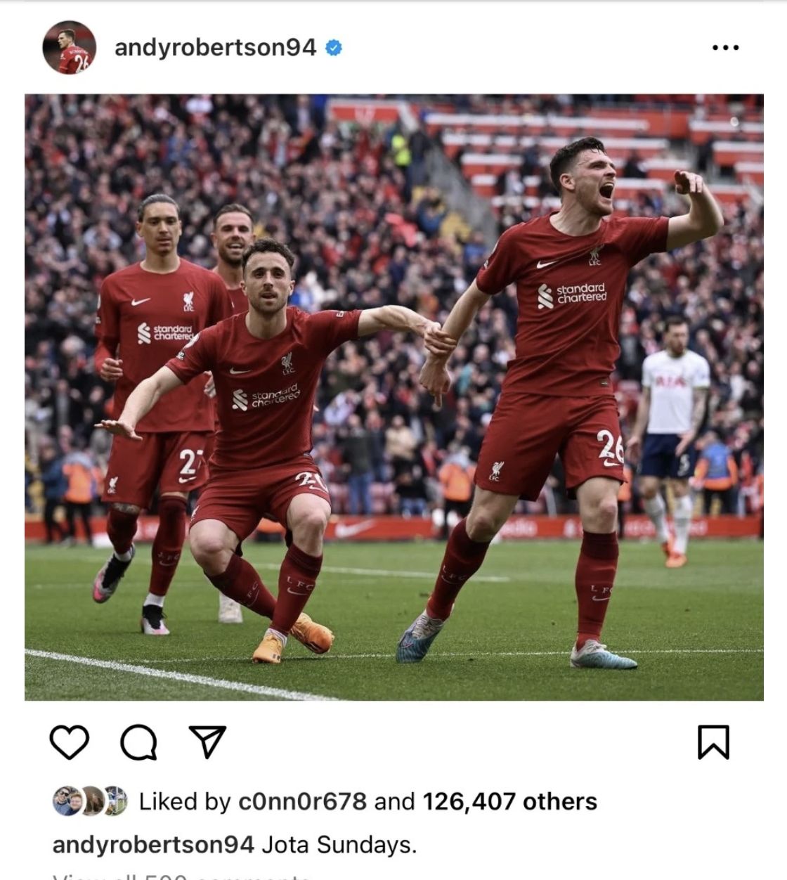Robertson, a well-known Celtic supporter, took to Instagram after the game to celebrate with the caption ‘Jota Sundays’, referencing the match winner at Hampden hours earlier.