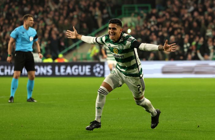 Luis Palma after scoring against Feyenoord at Celtic Park on December 13, 2023. (Photo by ANDY BUCHANAN/AFP via Getty Images)