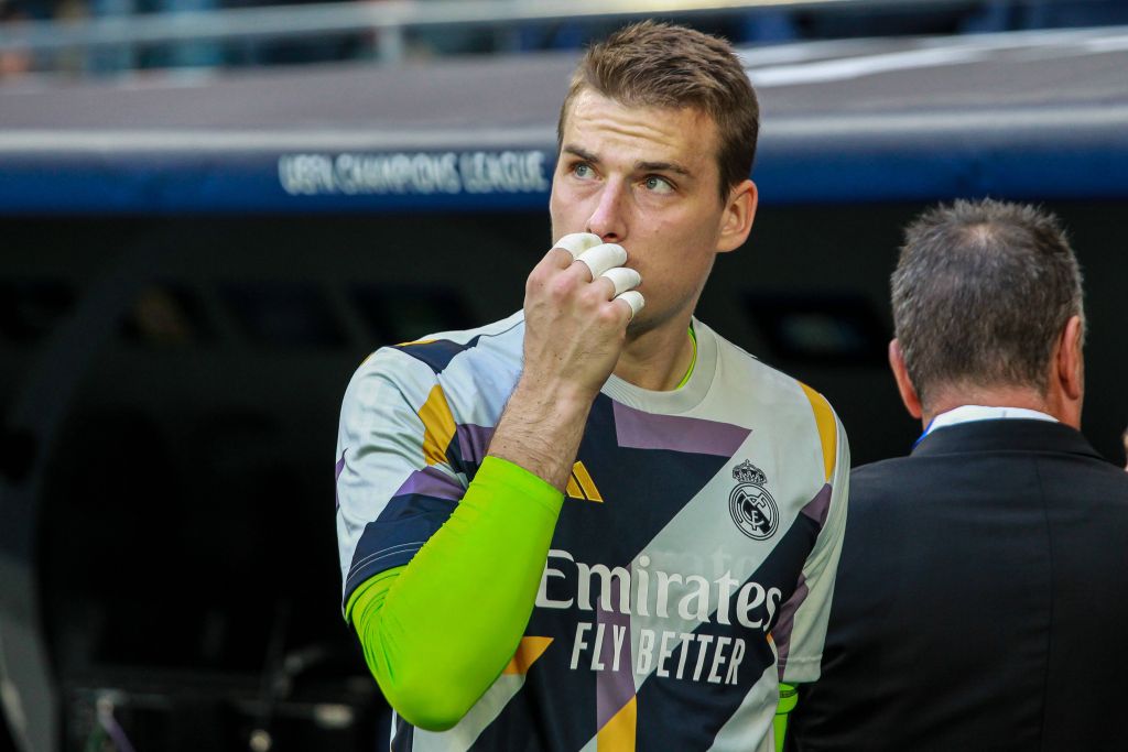 September 20, 2023: Andriy Lunin of Real Madrid looks on during the UEFA Champions League, Group C, match played between Real Madrid and Union Berlin at Santiago Bernabeu stadium on September 20, 2023, in Madrid, Spain. – Photo ZIrina R.Hipolito