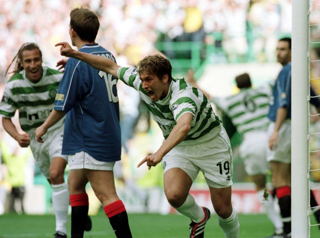 27 Aug 2000: Stilian Petrov of Celtic celebrates after scoring the second goal during the Celtic v Rangers Premier League match at Celtic Park. Stu Forster/ALLSPORT