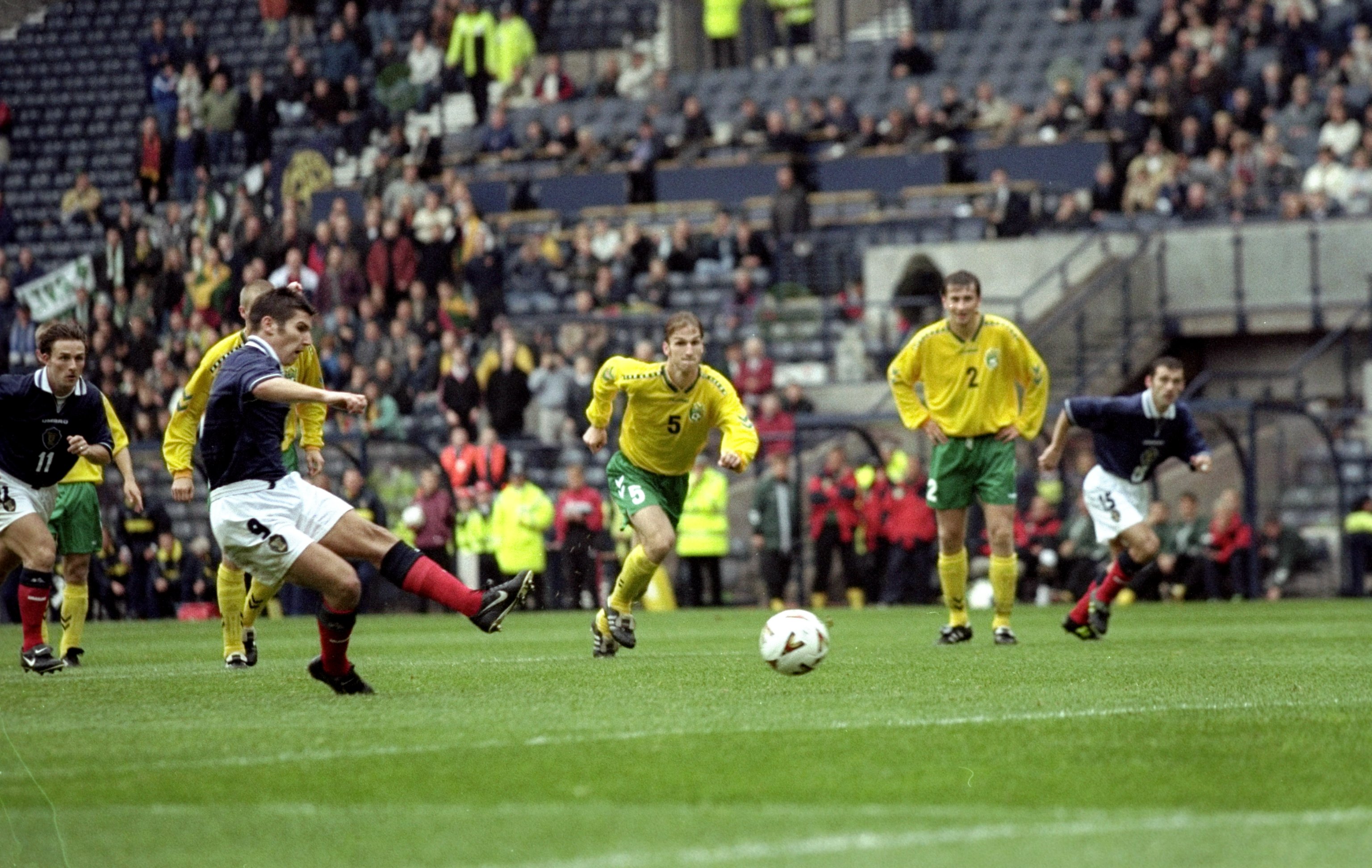 - 9 Oct 1999: Mark Burchill of Scotland misses a penalty during the European Championships Group 9 qualifier against Lithuania at Hampden Park in Glasgow, Scotland. Scotland won 3-0. Mandatory Credit: Alex Livesey /Allsport