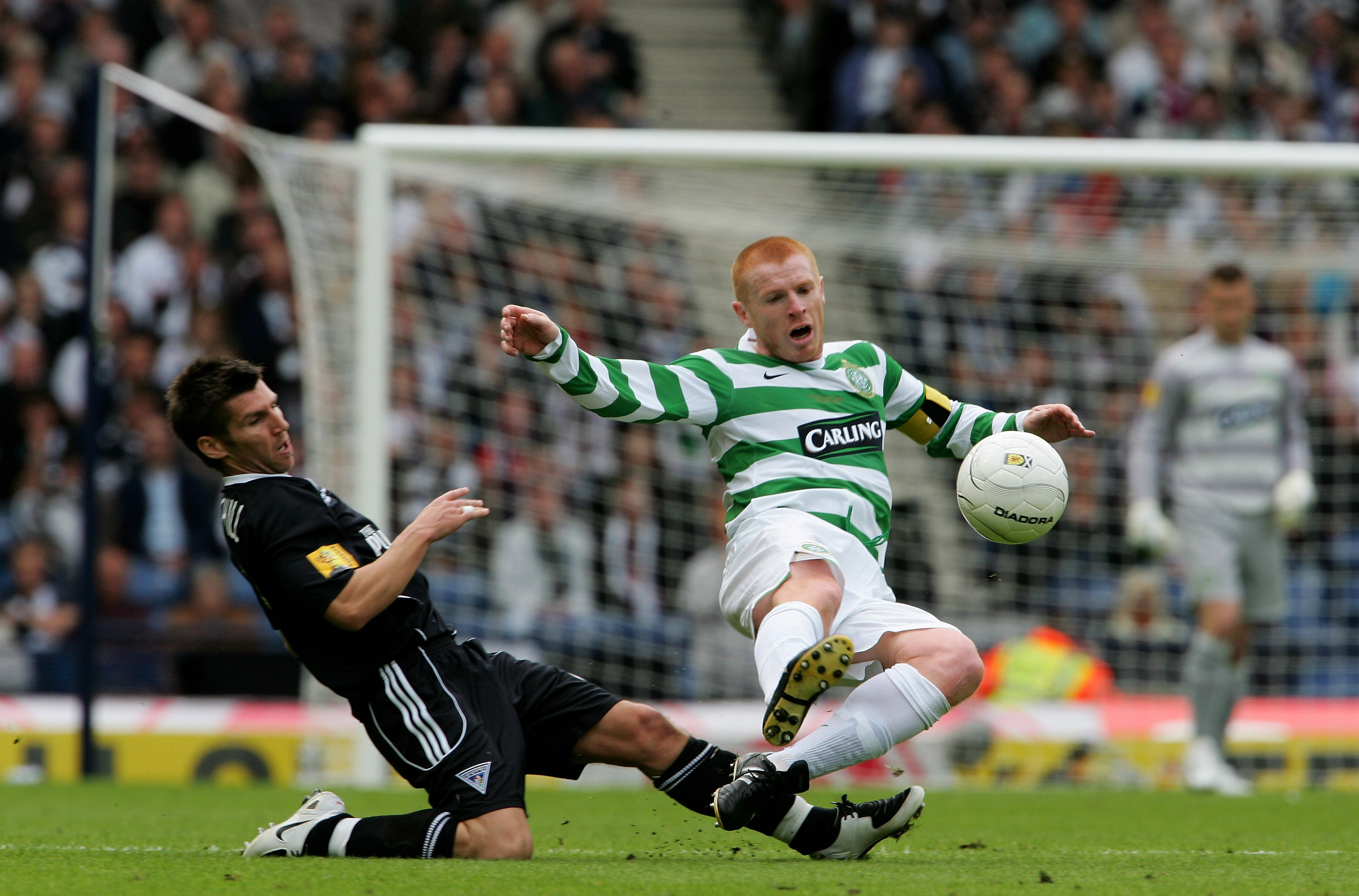 - GLASGOW, UNITED KINGDOM – MAY 26: Neil Lennon of Celtic gets tackled by Mark Burchill of Dunfermline Athletic during the Tennents Scottish Cup Final at Hampden Park on May 26,2007 in Glasgow, Scotland. (Photo by Phil Cole/Getty Images)