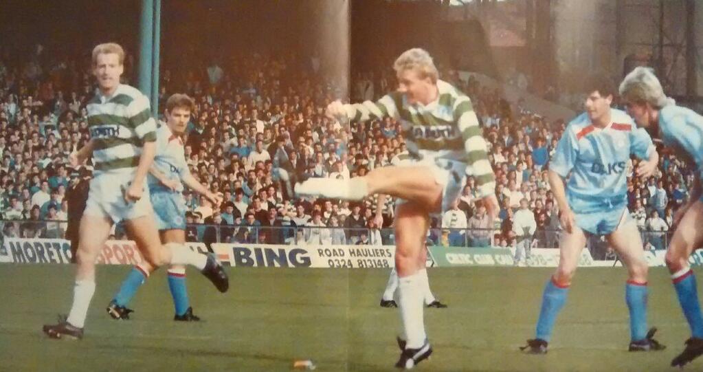 Tommy Burns found himself up against Gerry Collins, his old Bhoyhood pal from the Calton, whilst the larger-than-life character that is Chic Charnley was on the bench for Hamilton. Miller did his best to commence the banishment of the blues from Parkhead, the winger converting a Chris Morris cross from close-range in the seventh minute.