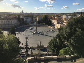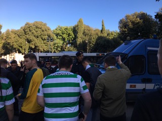 After a drive past the Vatican City walls, where the Hoops are out in force, we have been dropped off near the Villa Borghese, from where the coaches will ferry the Celtic support to the stadium later on. A short walk takes us to the Piazza del Popolo, one of the nicest squares in Rome. There are restaurants here, busy as tourists and locals alike soak up the sun, so this is a perfect spot for lunch. Happy days.