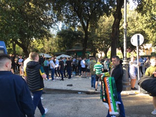 There is another one going on in the Villa Borghese park itself, where a small kiosk is doing a roaring trade serving thirsty Hoops. This is where the buses will leave from for the stadium and it is getting busier by the minute, as fans take on the guidance from the club to arrive early.
