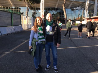 Security is as tight as predicted. There are two separate body searches plus a passport check, before we can head into the arena. We’re pretty much first off the bus and into the ground, three-and-a-half hours before kick-off. I’m the guy who struggles to make a game at Celtic Park on time, so the irony is not lost on Emma or myself. We’re here before the team, which is a definite first. But when in Rome…