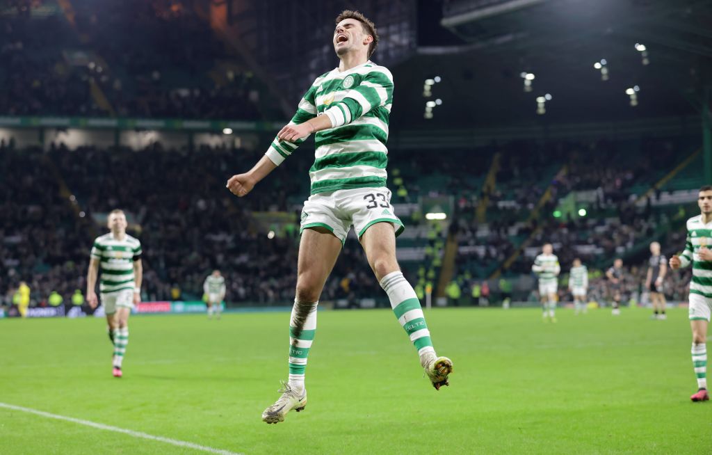 Celtic v St Mirren – Matt O’Riley celebrates scoring our fourth goal of the game during the Scottish Cup fifth round match at Celtic Park, Saturday February 11, 2023.Photo Steve Welsh