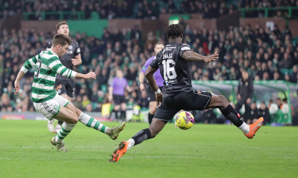 Celtic v St Mirren – Matt O Riley left scores his sides fourth goal of the game during the Scottish Cup fifth round match at Celtic Park, Saturday February 11, 2023. Photo Steve Welsh