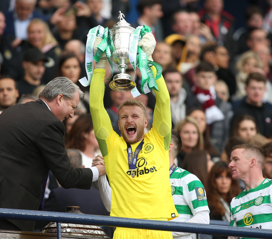 Craig Gordon celebrating after winning League Cup last December.